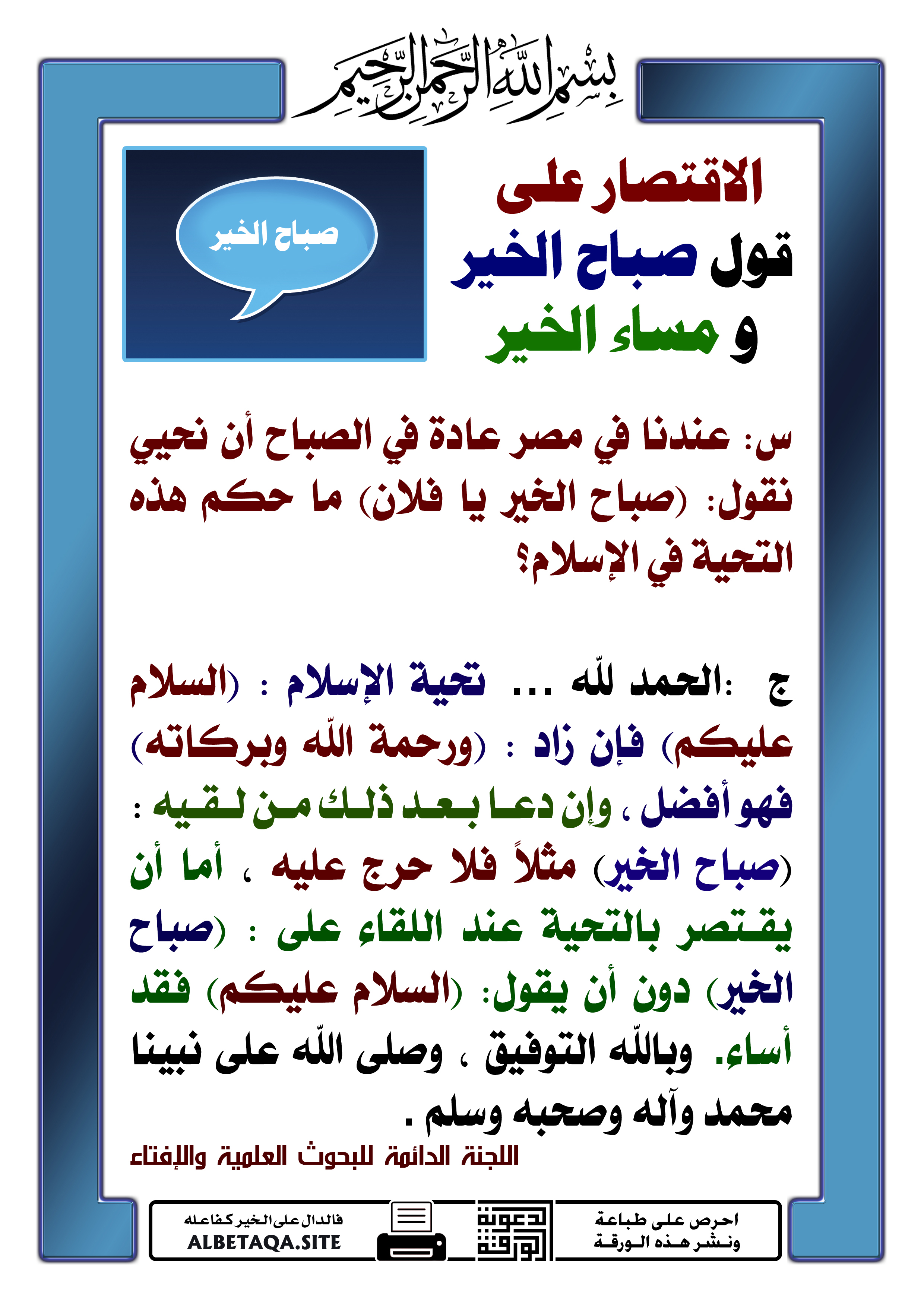 الاقتصار على قول صباح الخير ومساء الخير موقع البطاقة الدعوي
