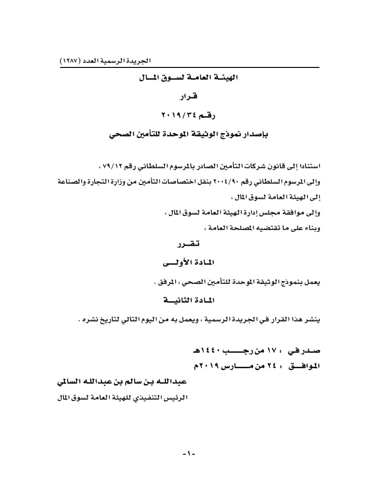إصدار نموذج الوثيقة الموحدة للتأمين الصحي الموقع الرسمي لجريدة ع مان