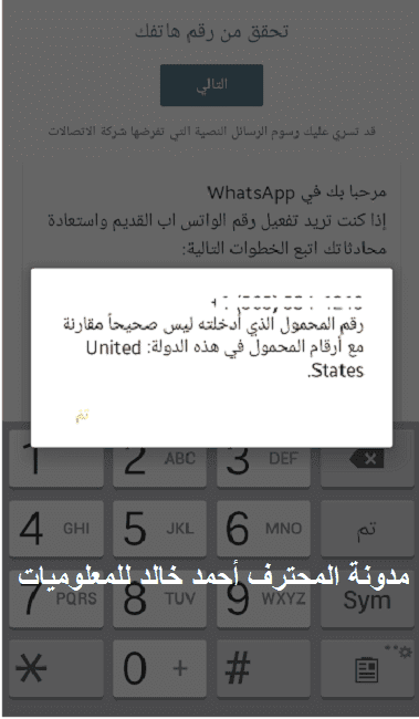 حل مشكلة هذا الرقم ليس رقما خلويا فعليا في دولة الولايات المتحدة وحل مشكلة الحظر في واتساب Youtube
