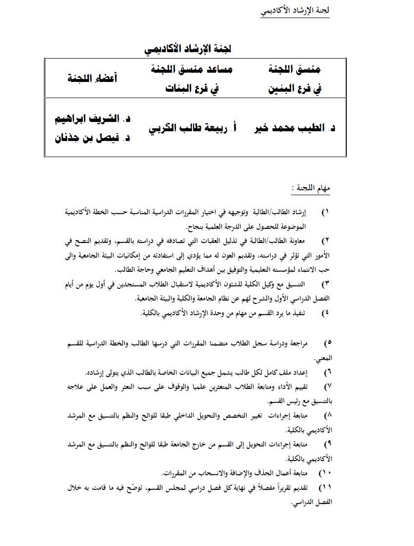 College Of Science And Arts Sharoura لجنة الارشاد الأكاديمي