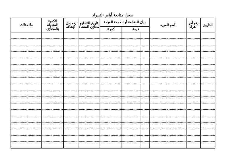 نماذج و قوالب نموذج سجل متابعة اوامر الشراء Record Of Follow Up Purchase Orders