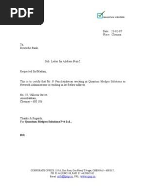 Address Proof Letter